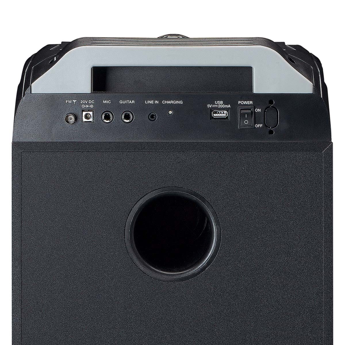 Den robuste konstruksjonen med metallgitter gjør høyttaleren slitesterk, mens kontrollpanelet på toppen og den medfølgende fjernkontrollen gjør betjeningen enkel og praktisk.