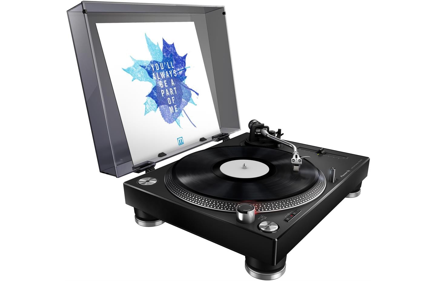This turntable comes with all the accessories you need to get started: a dust cover with jacket stand, a slipmat and a silver edition PC-HS01-S headshell (cartridge and stylus included).
