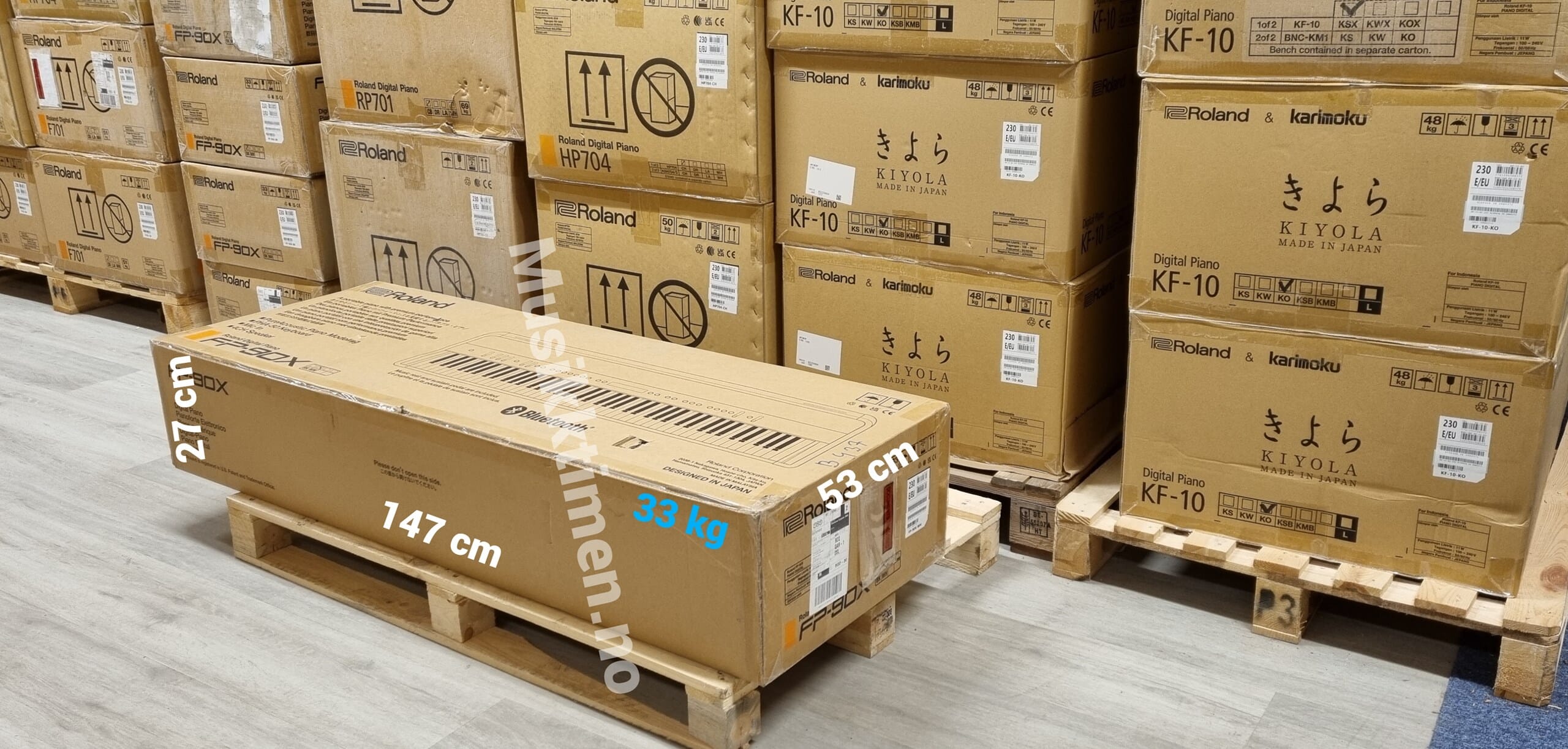 For at du skal danne deg et inntrykk av størrelsen på den største kartongen med pianoklaviaturet viser vi et bilde av den ovenfor.