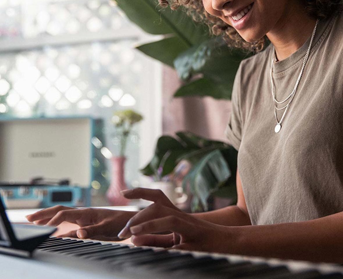 Twin Piano-modus er ideell for leksjoner, og lar elev og lærer spille side ved side i samme oktavområde